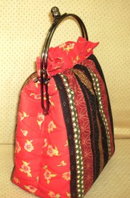 這款晚宴包又稱口金包,它可以做多種變化,也會因為色系不同,效果也不同,深受好評;印象最深刻是,外甥女因研究所畢業且要到德國繼續深造,我做了一個當她的禮物,她也非常喜愛,她真的帶到德國去,因此有人出價200歐元希望她可以割愛,她覺得這是珍貴的禮物,所以未出讓,當她遠從德國來電告知時,心中高興無比,這就是我創作拼布的初衷,希望又更多的人可以喜愛......................